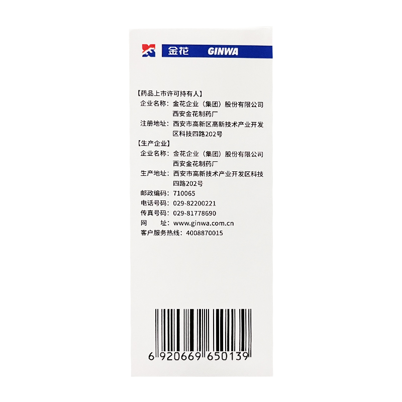 生产产商: 金花企业(集团)股份有限公司西安金花制药