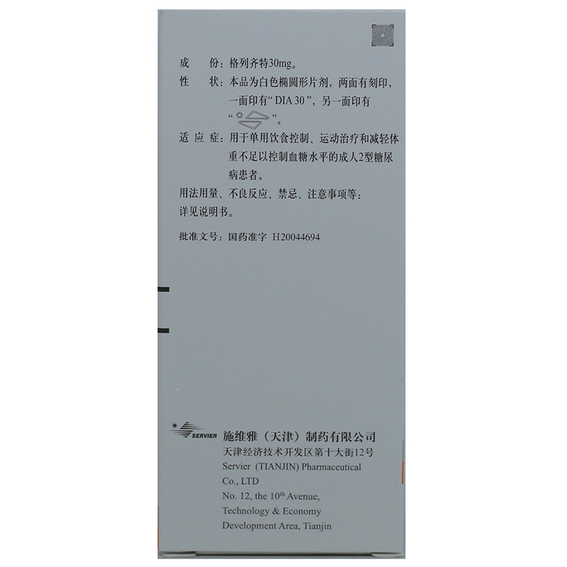 格列齐特缓释片(达美康) 30mg*30s 施维雅(天津)制药有限公司