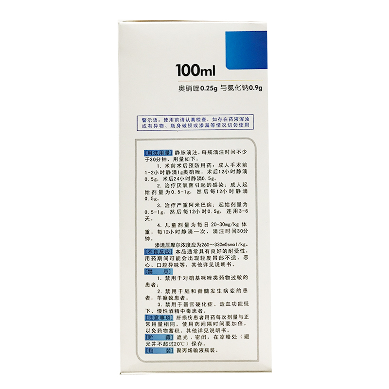 奥硝唑氯化钠注射液(塑瓶) 100ml:0.25g:0.9g 四川科伦药业股份有限公司