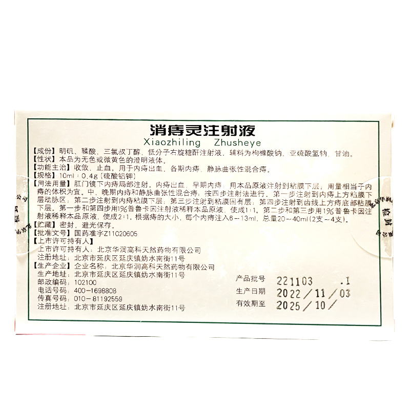 消痔灵注射液 10ml:0.4g*2支 北京华润高科天然药物有限公司
