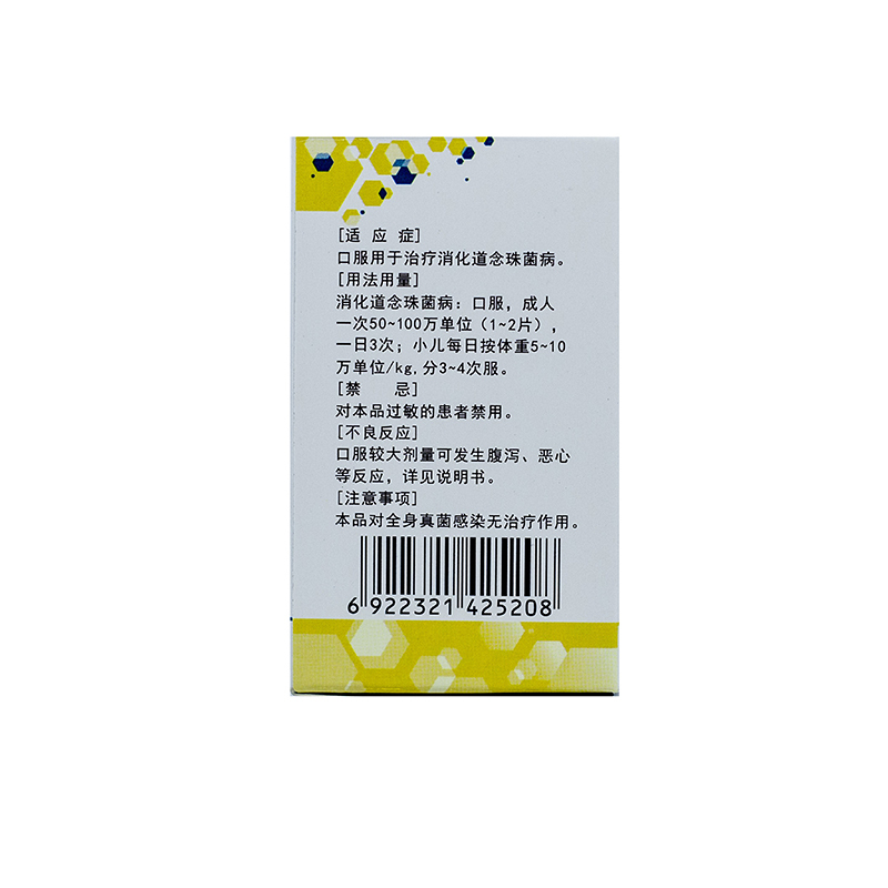 临床主要用于口腔、胃肠道、阴道以及皮肤粘膜的念珠菌感染;常与广谱抗生素合用;以防止真菌引起二重感染。