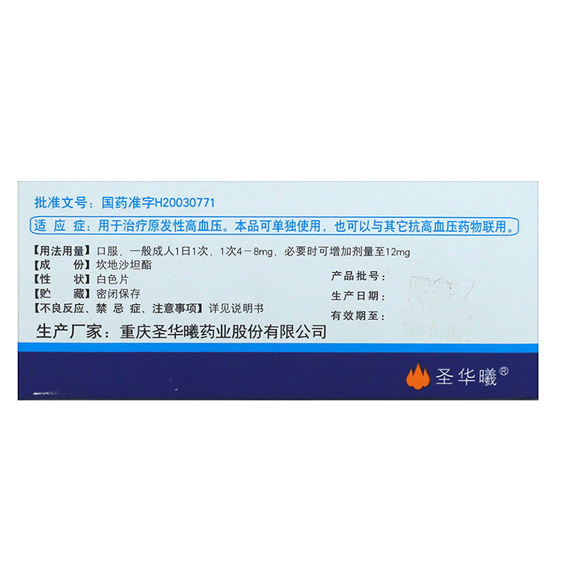 坎地沙坦酯片(维尔亚) 4mg*14s 重庆圣华曦药业股份有限公司