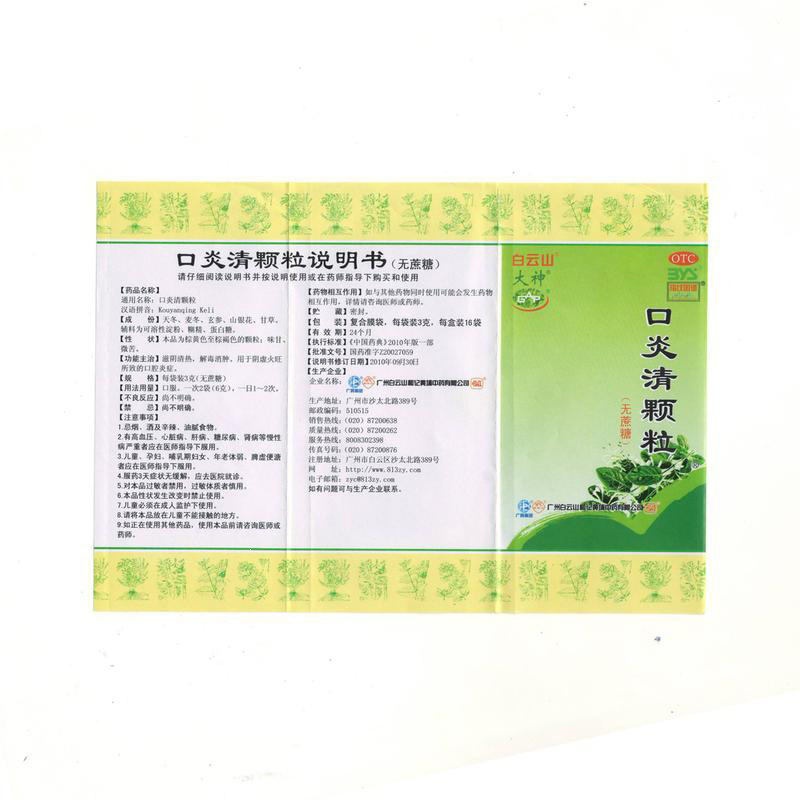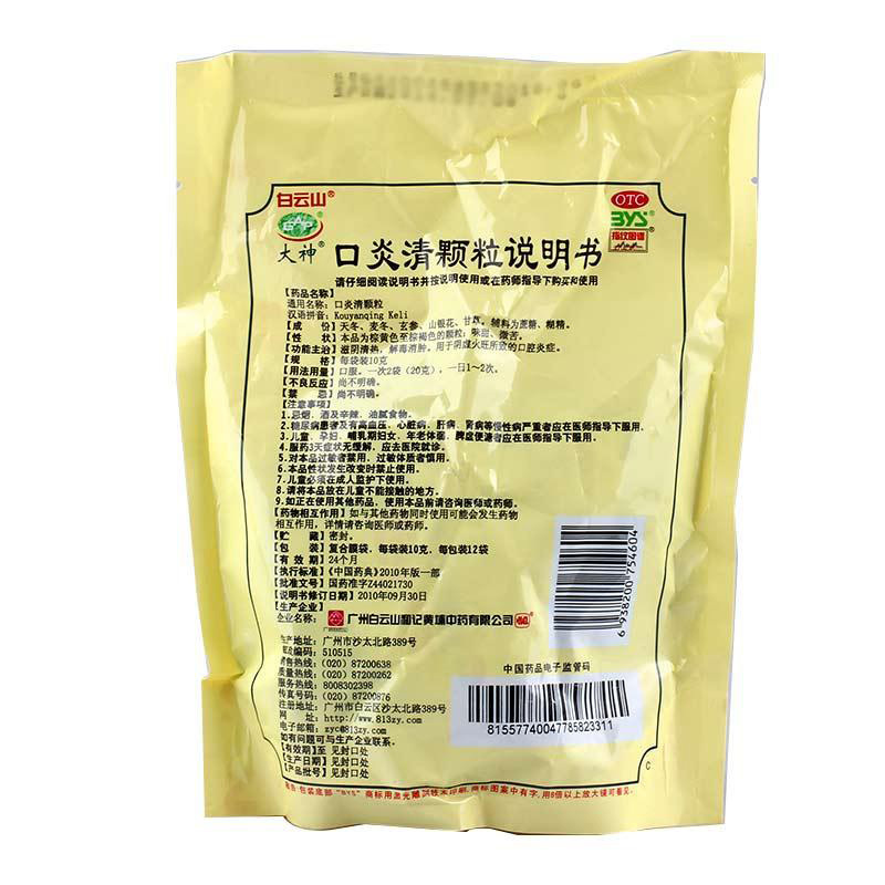 口炎清颗粒 10g*12袋 广州白云山和记黄埔中药有限公司