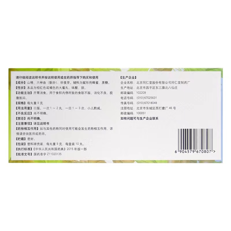 大山楂丸 9g*10丸 北京同仁堂股份有限公司同仁堂制药厂