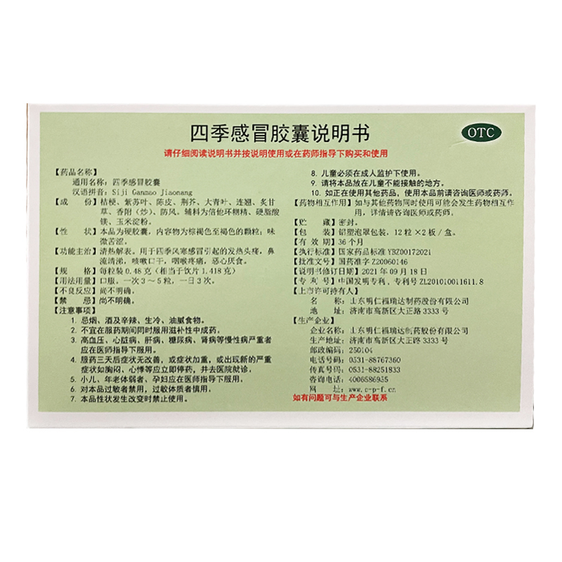 四季感冒胶囊 0.48g*24s 山东明仁福瑞达制药股份有限公司
