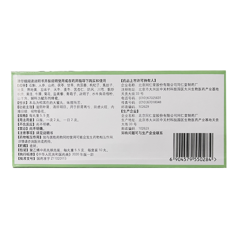 生产产商: 北京同仁堂股份有限公司同仁堂制药厂