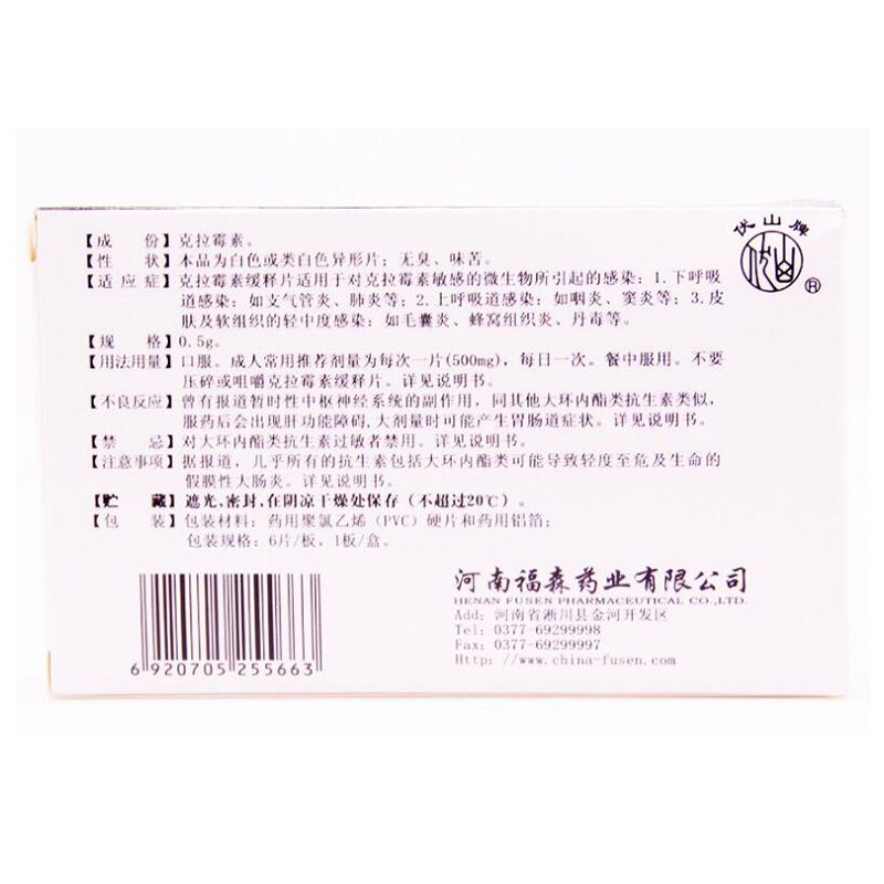 克拉霉素缓释片 0.5g*6s 河南福森药业有限公司