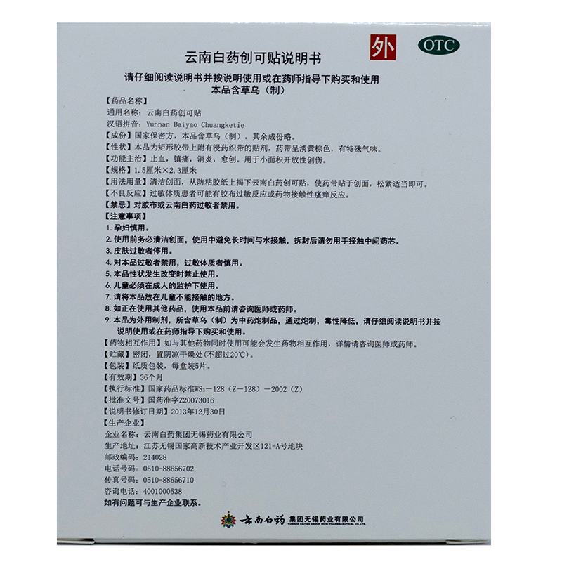 产  地: 云南白药集团无锡药业有限公司
