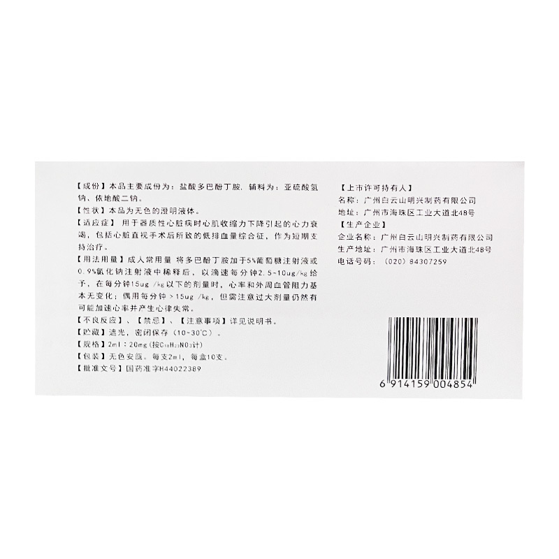 巨划算 盐酸多巴酚丁胺注射液 2ml:20mg 广州白云山明兴制药有限公司