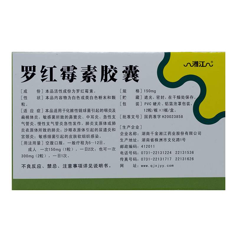 罗红霉素胶囊 150mg*12s(10) 湖南千金湘江药业股份有限公司