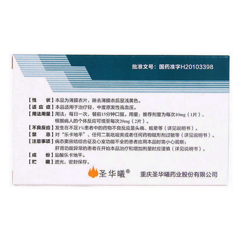盐酸乐卡地平片 10mg*14s 重庆圣华曦药业股份有限公司