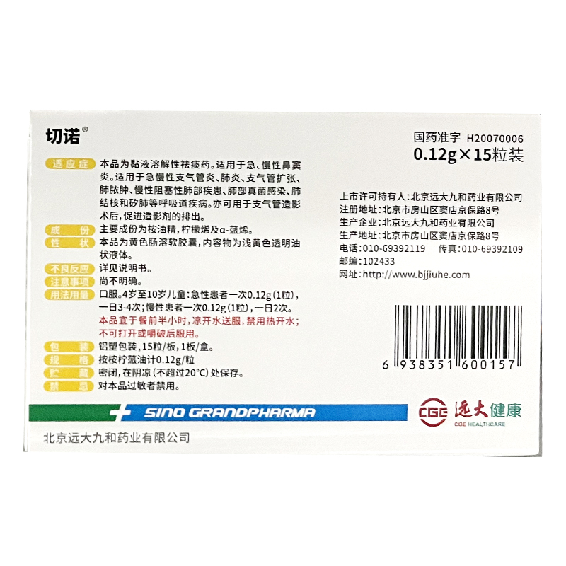 桉柠蒎肠溶胶囊 0.12g*15s 北京远大九和药业有限公司