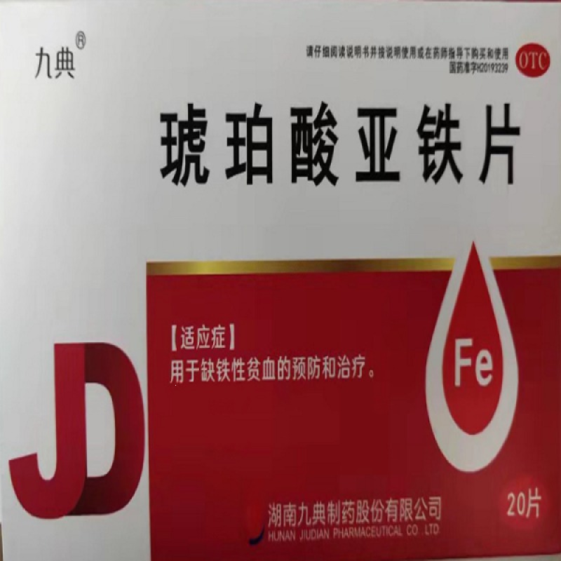 琥珀酸亚铁片 0.1g*10s*2板 湖南九典制药股份有限公司