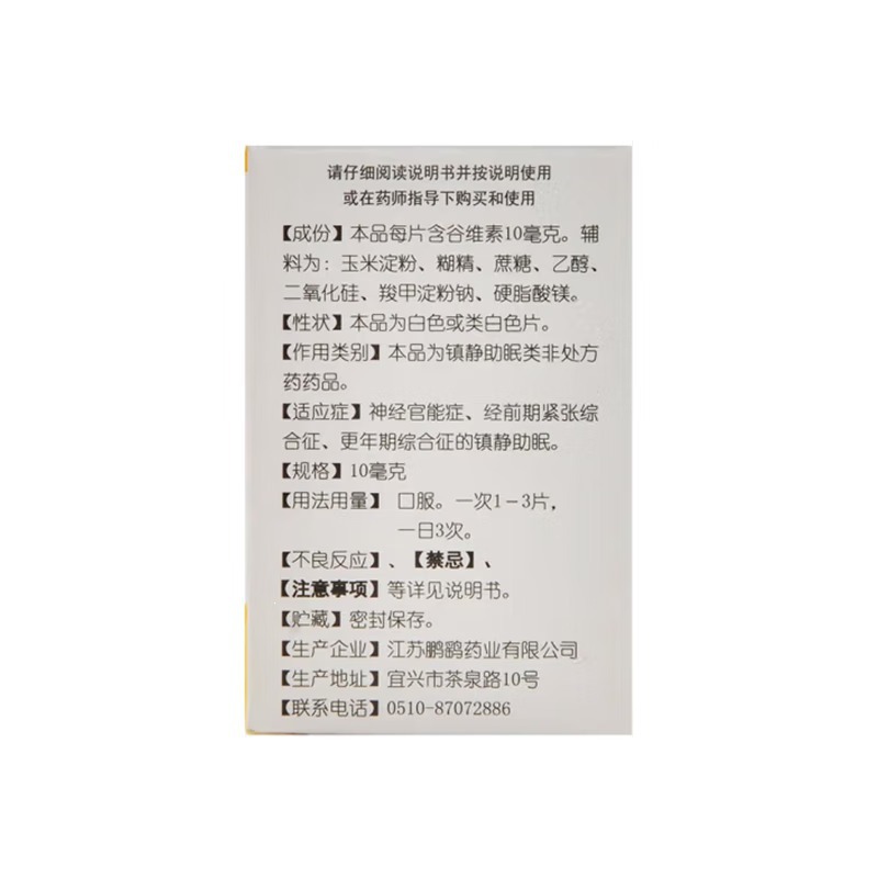 谷维素片 10mg*100s 江苏鹏鹞药业有限公司
