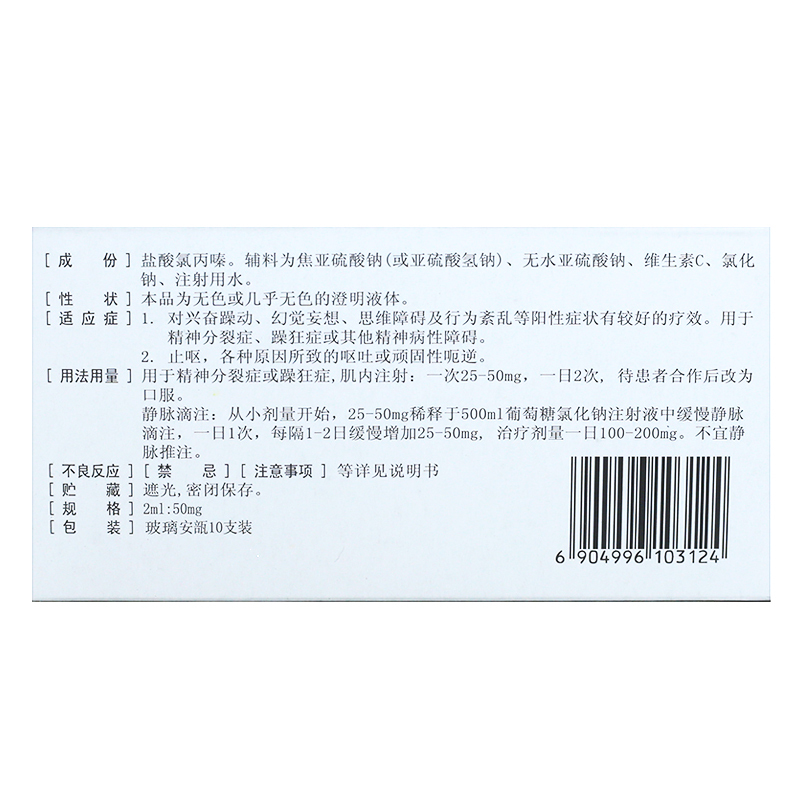 盐酸氯丙嗪注射液 2ml:50mg*10支 上海禾丰制药有限公司