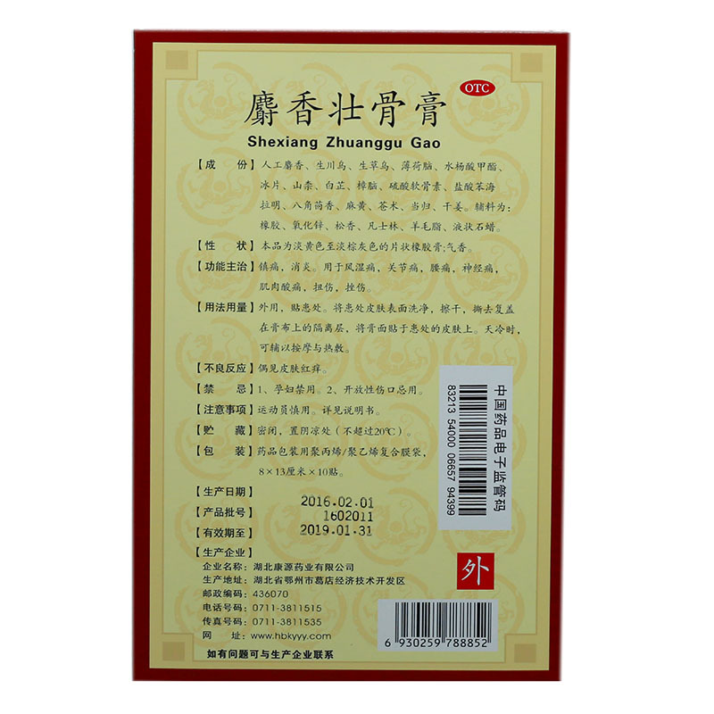 麝香壮骨膏 8cm*13cm*10贴 湖北康源药业有限公司