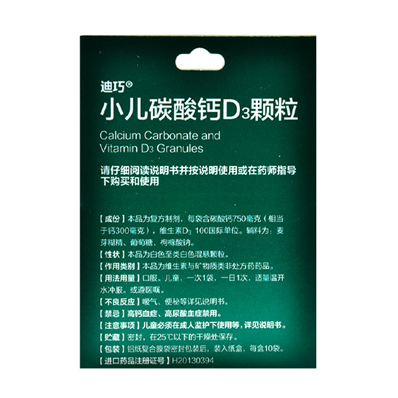 小儿碳酸钙D3颗粒(迪巧颗粒) 0.75g*10袋 安士制药(中山)有限公司