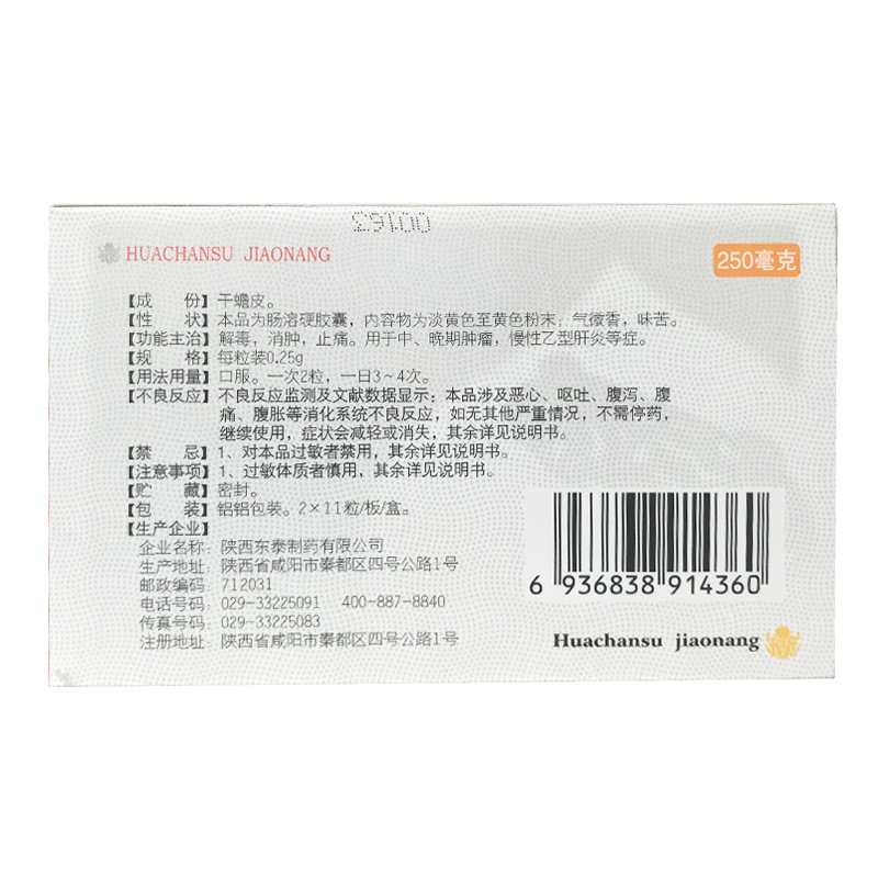 华蟾素胶囊 0.25g*22s 陕西东泰制药有限公司
