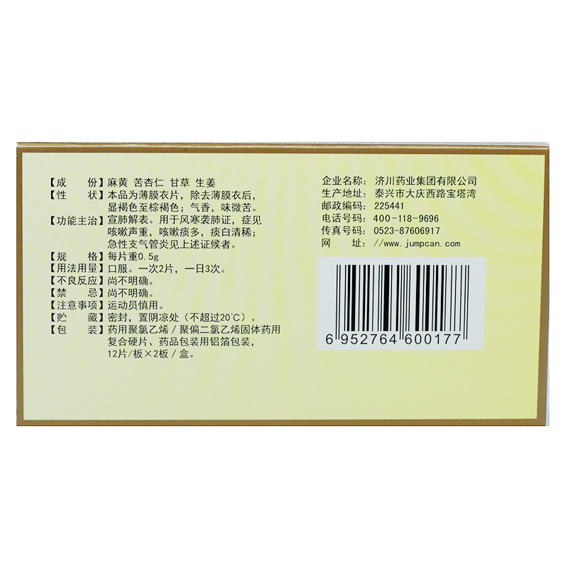 三拗片 0.5g*24s 济川药业集团有限公司