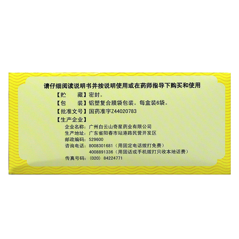 虚汗停颗粒 10g*6袋 广州白云山医药集团股份有限公司白云山制药