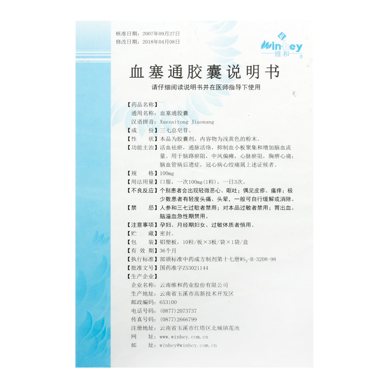 血塞通胶囊 100mg*30s 云南维和药业股份有限公司