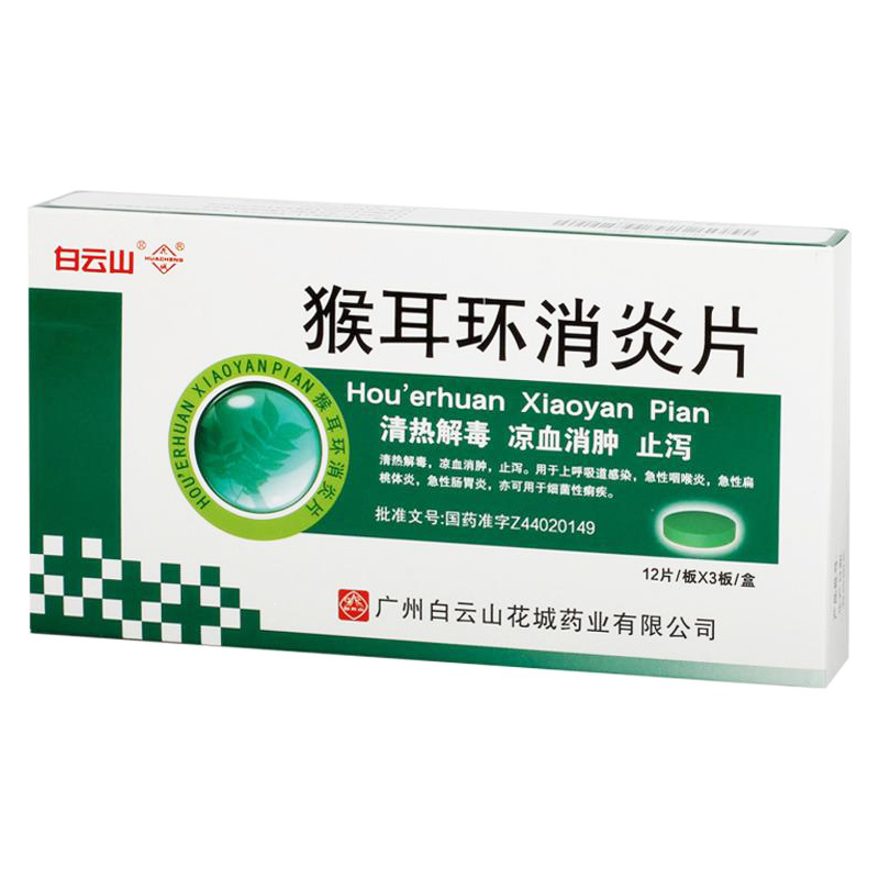 猴耳环消炎片 0.24g*12s*3板 广州白云山花城药业有限公司