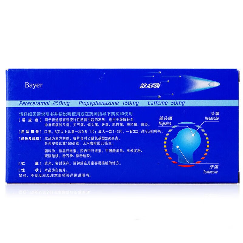 用于普通感冒或流行性感冒引起的发热,也用于缓解轻至中度疼痛如头痛、关节痛、偏头痛、牙痛、肌肉痛、神经痛、痛经。