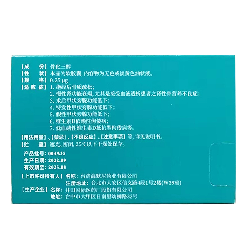 骨化三醇胶丸 0.25μg*10s 井田国际医药厂股份有限公司