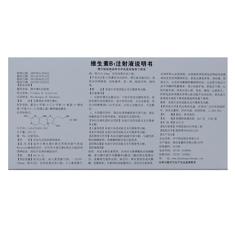 维生素B1注射液 2ml:0.1g*10支(10) 华中药业股份有限公司