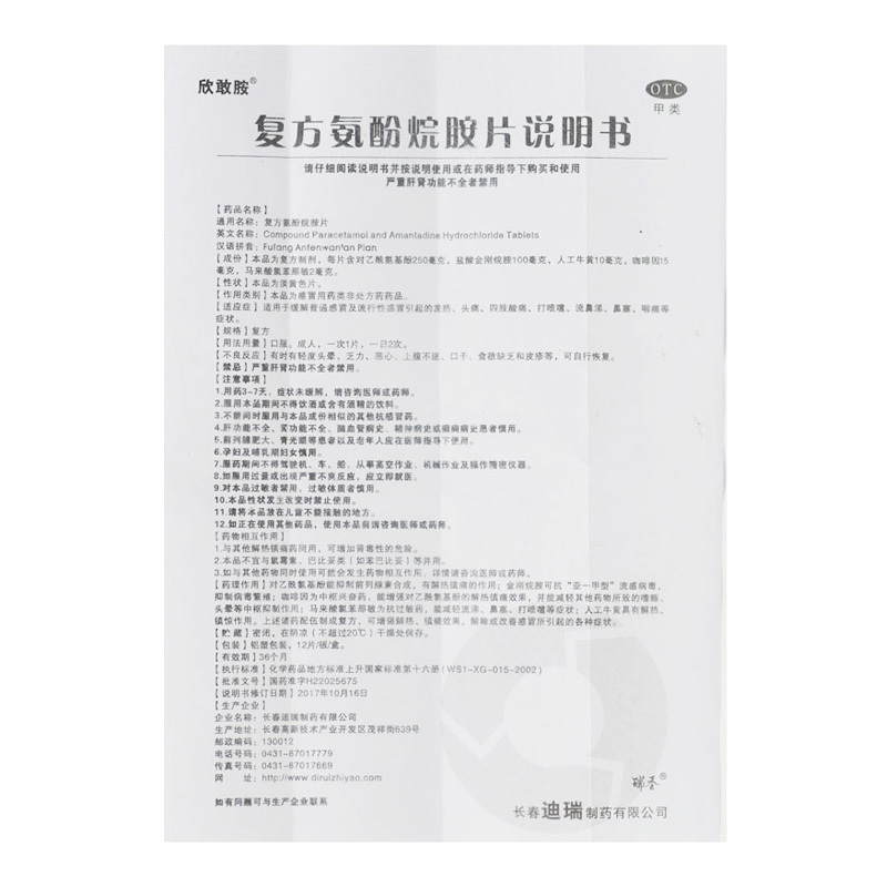 复方氨酚烷胺片 12s 长春迪瑞制药有限公司