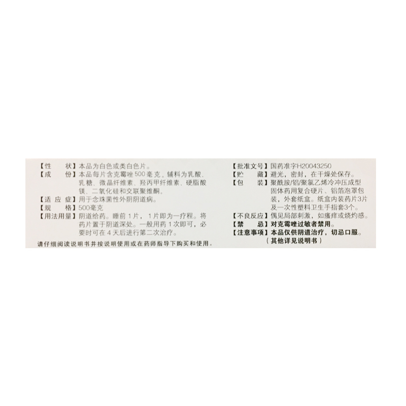 克霉唑阴道片 0.5g*3s 湖南华纳大药厂股份有限公司