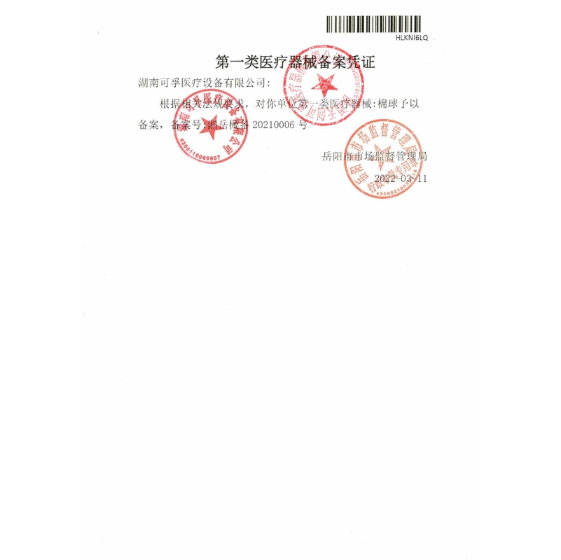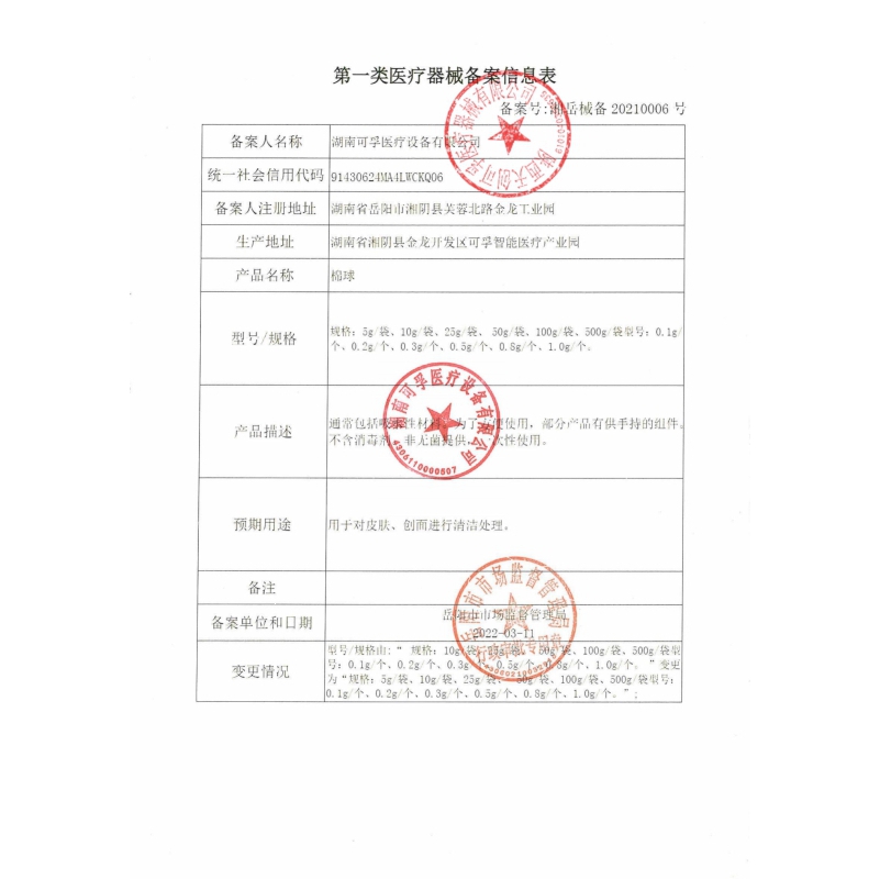 药品生产许可证编号: 湘岳食药监械生产备20180001号