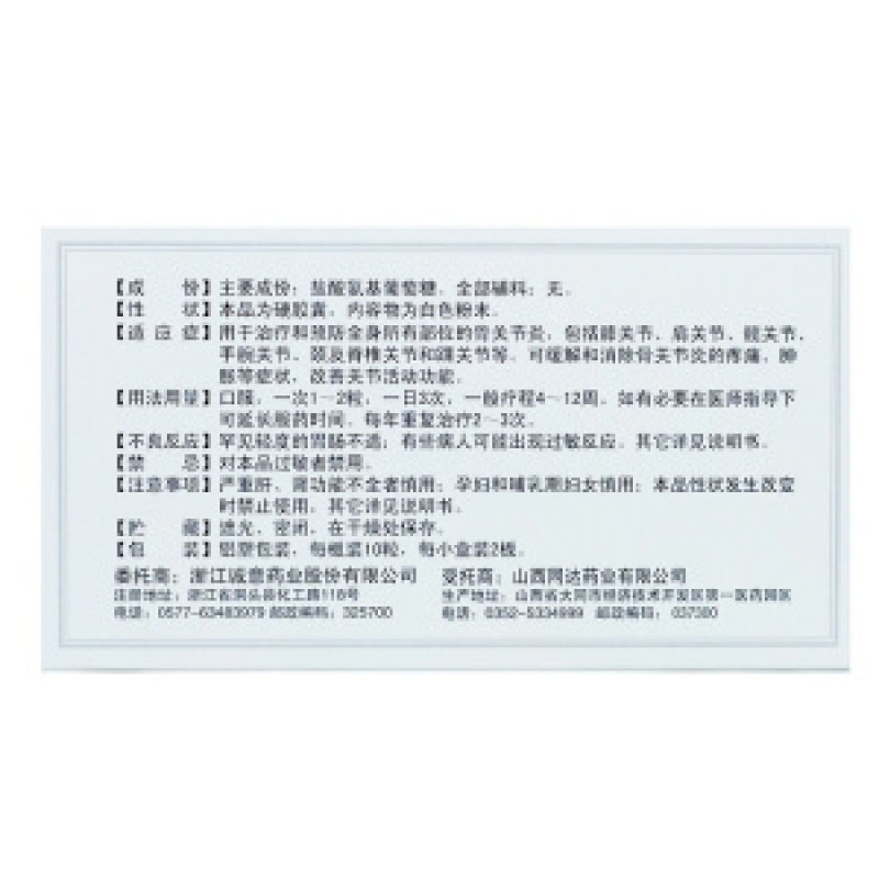 盐酸氨基葡萄糖胶囊 0.24g*20s 浙江诚意药业股份有限公司